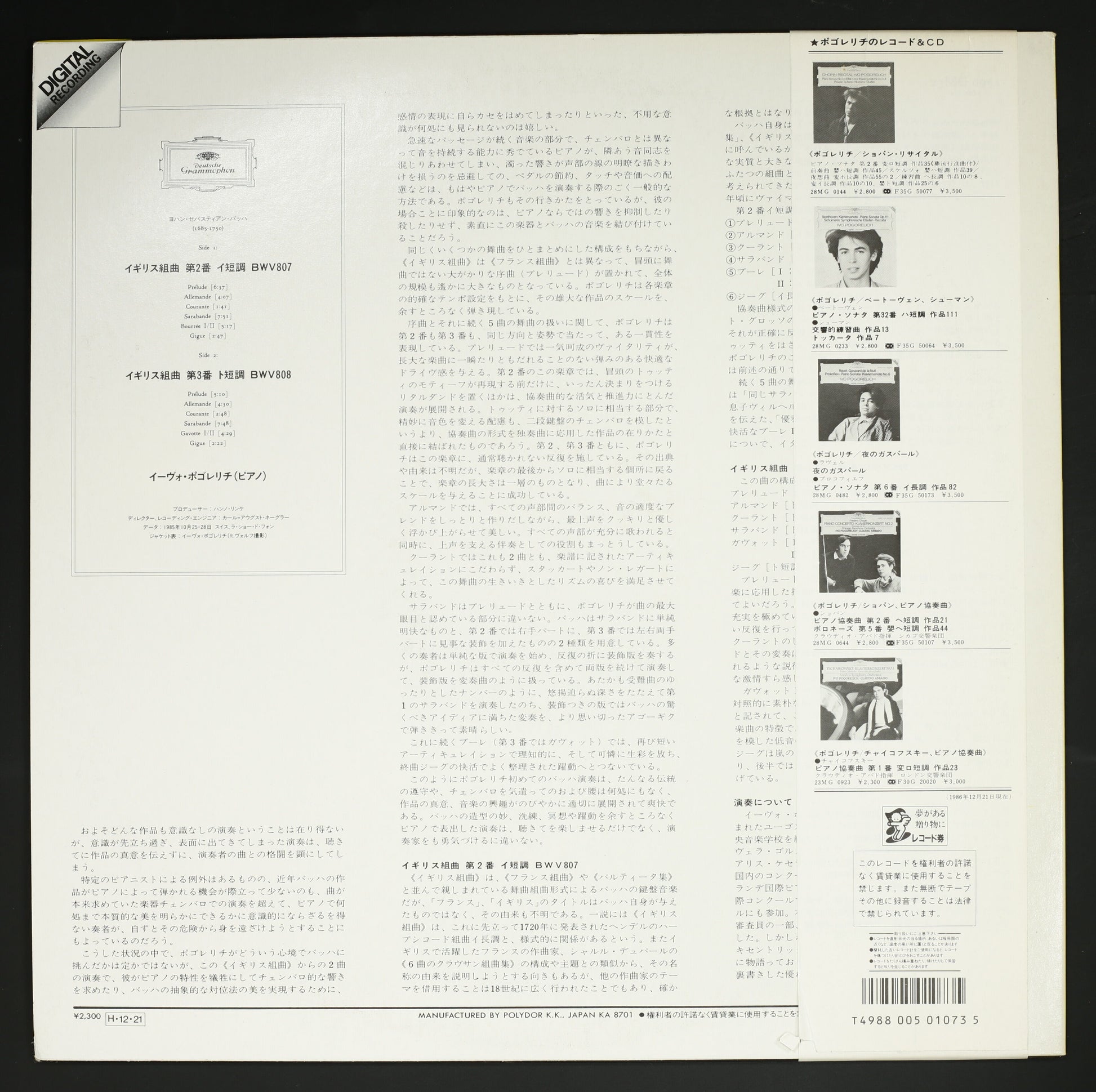 Ivo Pogorelich/Bach: English Suites No. 2, No. 3